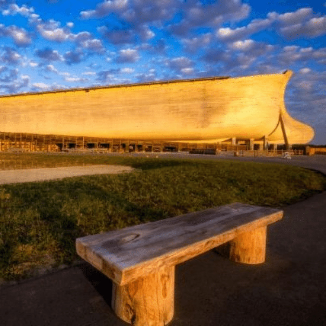 At the Ark Encounter Tour, visitors travel back to the time of Noah and the Great Flood and explore a life-sized reconstruction of the Biblical ark with dioramas and animal models inside.